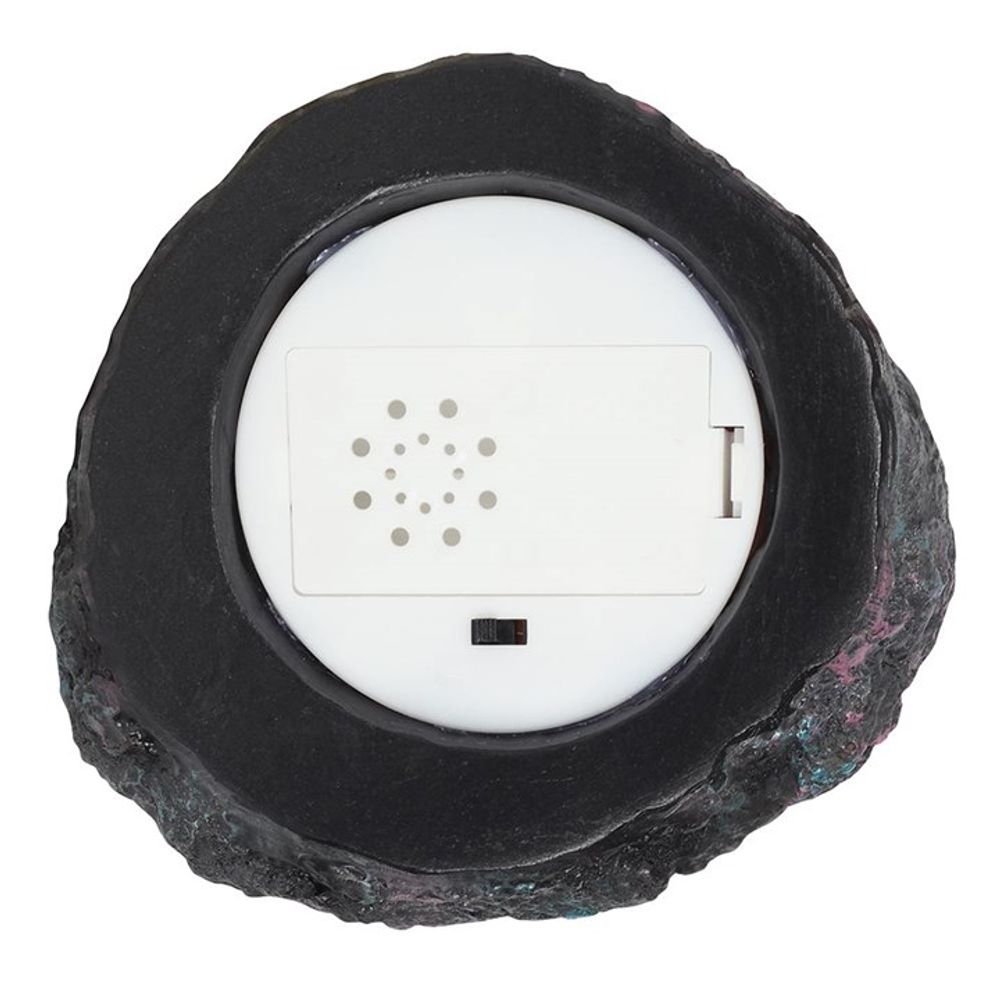 An intricate and captivating backflow incense burner with pearlescent red and gold dragon perched atop a stunning crystal cave. Place a backflow incense cone on the dragon's back and watch the swirls of smoke cascade through the lighted crystals. Powered by on/off switch and 2 AA batteries (not included). Product Dimensions: H14cm x W12.5cm x D11.5cm Packaged Dimensions: H18cm x W16cm x D14.5cm